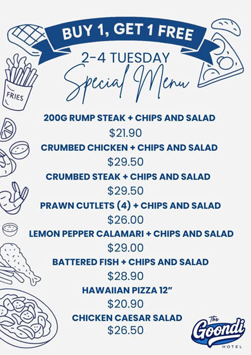 Whether you are looking for a night out, weekend entertainment, a day out in the cool beer garden or just a quick counter lunch. The Goondi Hill Hotel is the place to go.